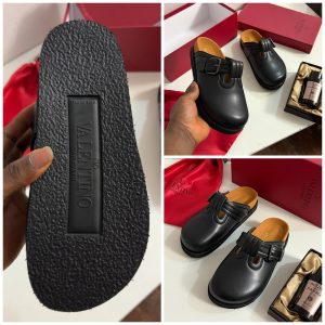 Valentino Garavani Black Leather Slippers